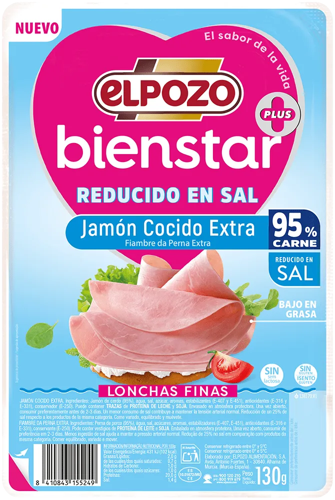 | 8 lonchas Jamón Cocido Extra Lonchas Finas ElPozo Bienstar |